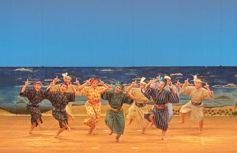 今回披露した「あんぱるぬみだがーま」は、石垣島にある名蔵あんぱるという干潟に生息する様々なカニにそれぞれ踊り手が扮し、生年祝いをする様子を表現したものです。